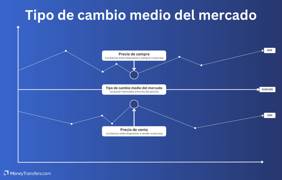 En términos técnicos, la tasa media del mercado, también llamada tasa interbancaria o tipo spot, es el punto medio al que los bancos intercambian divisas entre sí.