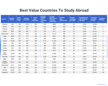 - Germany is the best value country for students and has the lowest tuition fees